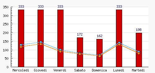 | Mercoledi | 333 | 17.86% | +333  | 128 | 17.14% | +128  | 118 | 17.03% | +118  |