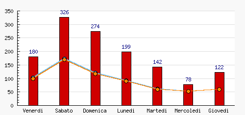 | Giovedi | 122 | 9.24% | +44  | 59 | 8.91% | +6  | 59 | 9.08% | +6  |